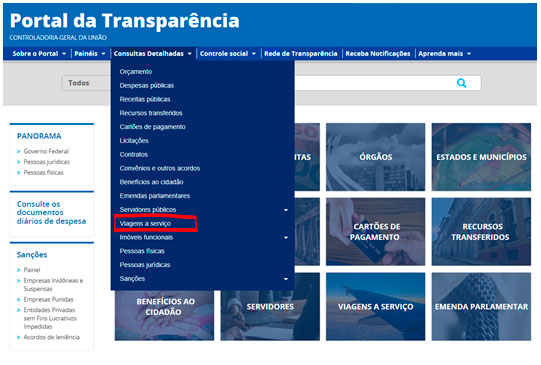 Passo a passo para consulta de diárias e passagens no Portal da Transparência”