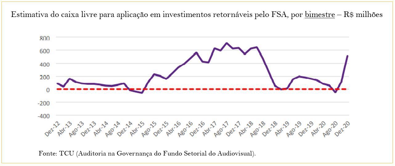 Nos últimos meses houve ampla divulgação da auditoria na governança do Fundo Setorial do Audiovisual, realizada pelo Tribunal de Contas da União (TCU) entre setembro de 2020 e março de 2021, no âmbito do processo TC 031.532/2020-9. No relatório apresentado, a equipe técnica do TCU destacou que as medidas de ajuste se fizeram necessárias uma vez que o Fundo não dispunha de recursos financeiros para investir em todos os projetos então selecionados e pendentes de contratação. O reforço financeiro para o FSA, ainda em 2020, garantiu o pagamento dos compromissos assumidos, incluindo a remuneração dos agentes prestadores de serviço, e a reunião de condições para o lançamento de novas chamadas públicas.