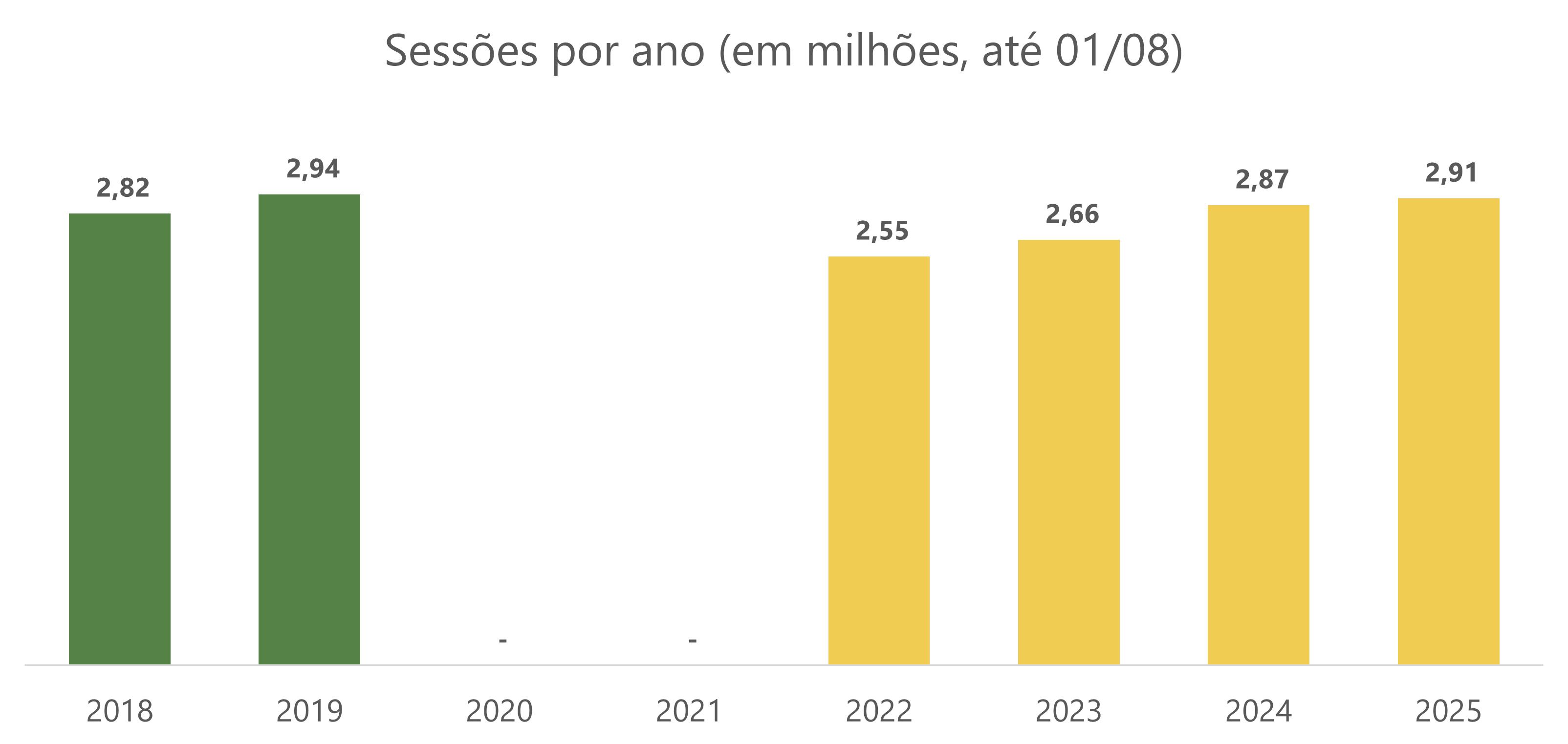 A oitiva teve início com a apresentação de um panorama do mercado cinematográfico brasileiro, destacando os indicadores das salas de exibição até 31 de agosto de 2025, e sua comparação com dados da série histórica.