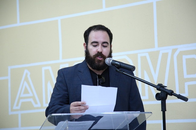 O Presidente da Associação dos Servidores, André Marques, proferindo seu discurso.