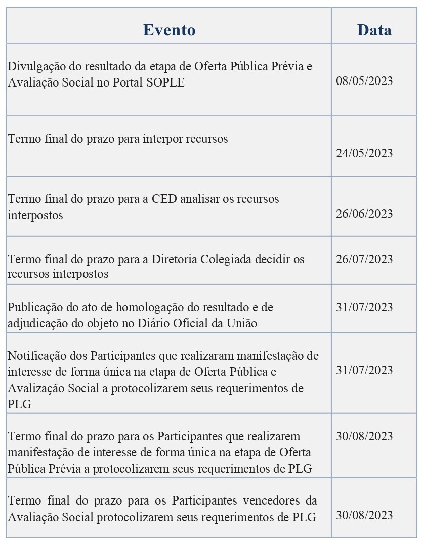 Mais detalhes estão disponíveis na Nota Técnica SEI Nº 4151/2023, anexa ao processo NUP 48051.002854/2021-94 e disponível no Portal SOPLE (link).