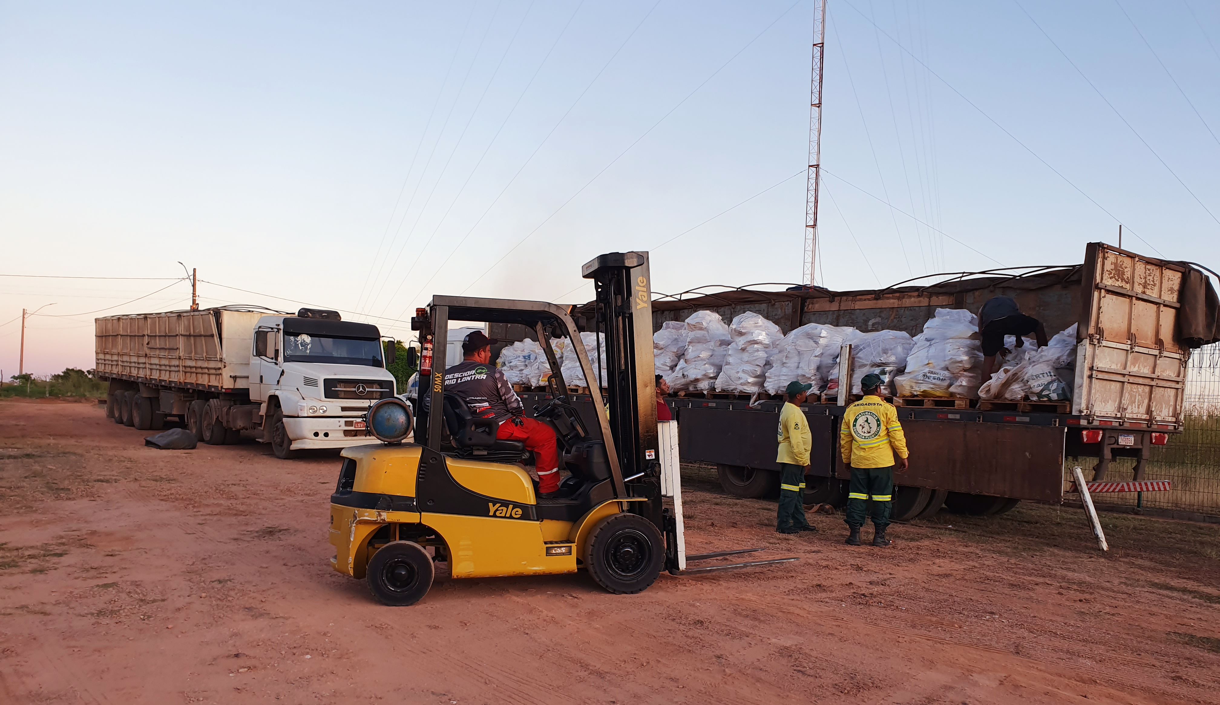Descarga do material fóssil na sede do Monumento Natural das Árvores Fossilizadas do Estado do Tocantins