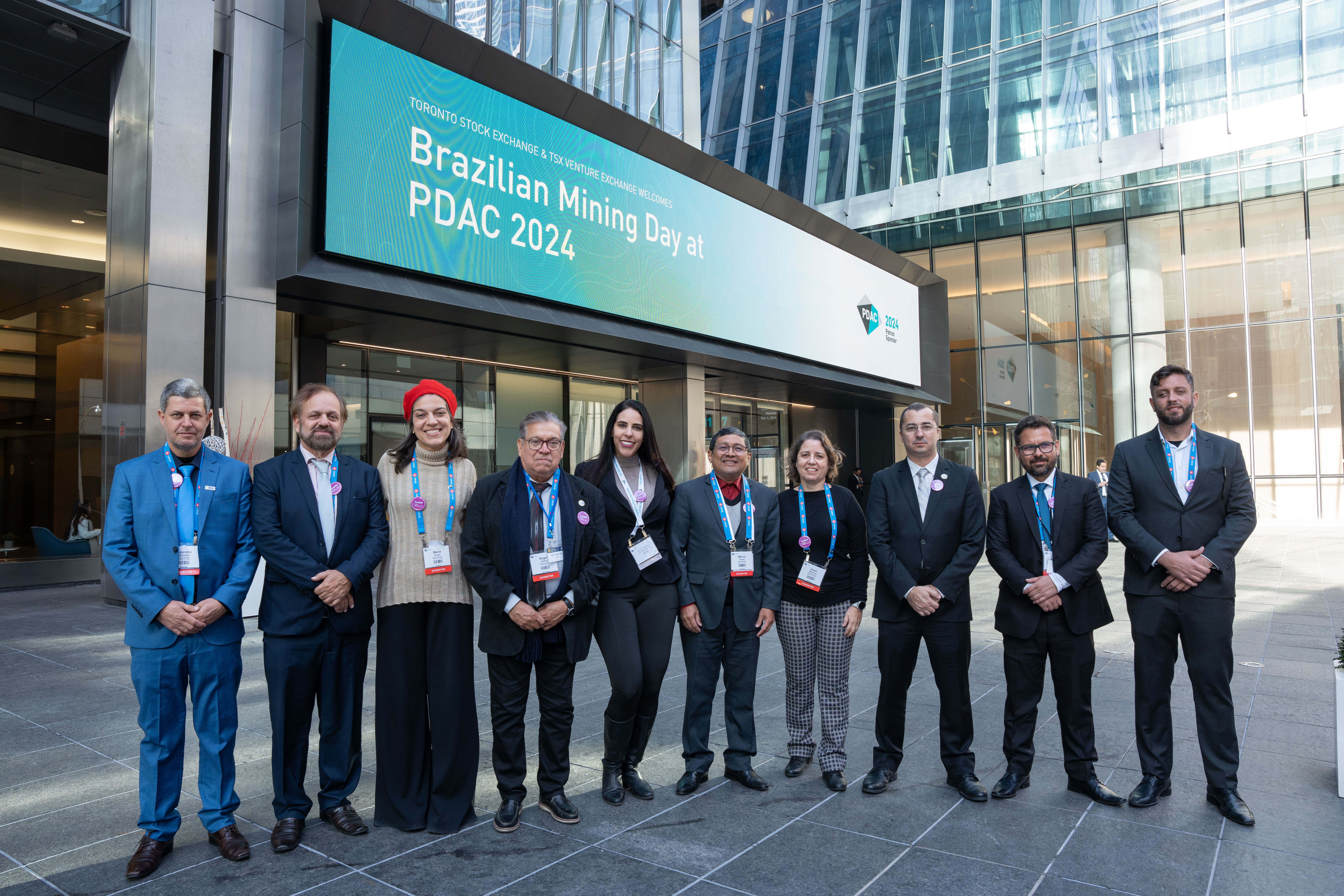 Delegação brasileira no PDAC contou com dez integrantes, dos quais quatro diretores (da esquerda para a direita): Tasso Mendonça (segundo), Roger Cabral (quarto), Mauro Sousa (sexto) e Guilherme Gomes (oitavo)