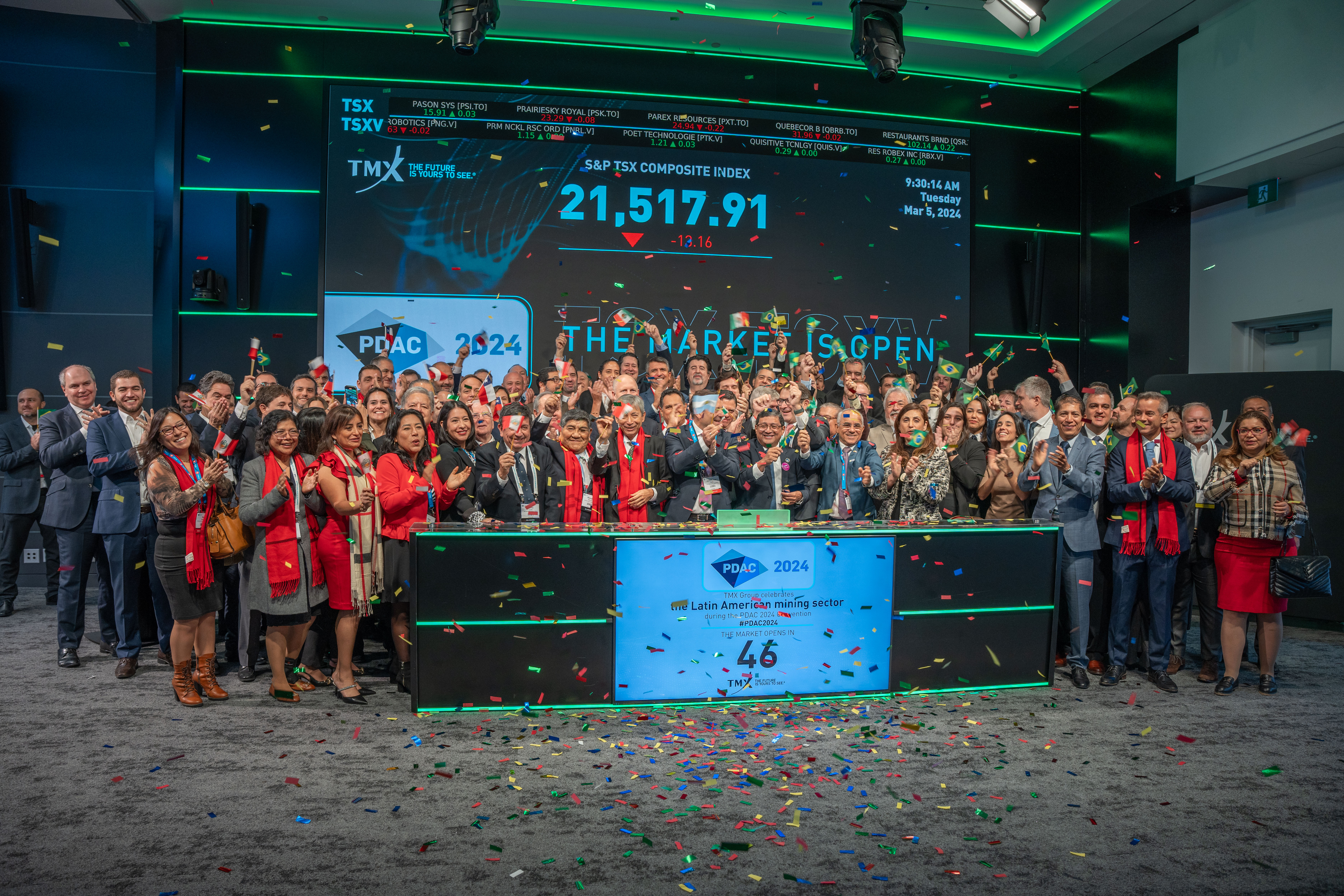 Representantes da ANM também participaram, na terça-feira (5), da tradicional abertura da Bolsa de Valores de Toronto para o mercado latino-americano. Sousa, por ser o representante máximo da delegação brasileira no PDAC, acionou o dispositivo de abertura dos pregões do dia juntamente com as autoridades máximas presentes no evento de outros países da região.