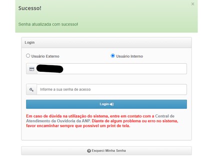 Após cadastro bem-sucedido da senha, confirmado pela tela abaixo, entrar novamente no link https://dpp.anp.gov.br e fazer o login com a nova senha cadastrada.