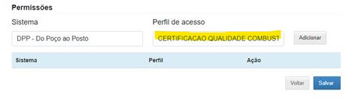 4 - Caso já tenha acesso ao sistema DPP, verificar dentro da CSA, na gestão de acesso dos agentes, se há permissão do sistema DPP para o perfil CERTIFICAÇÃO DA QUALIDADE DE COMBUSTÍVEIS para seu usuário.