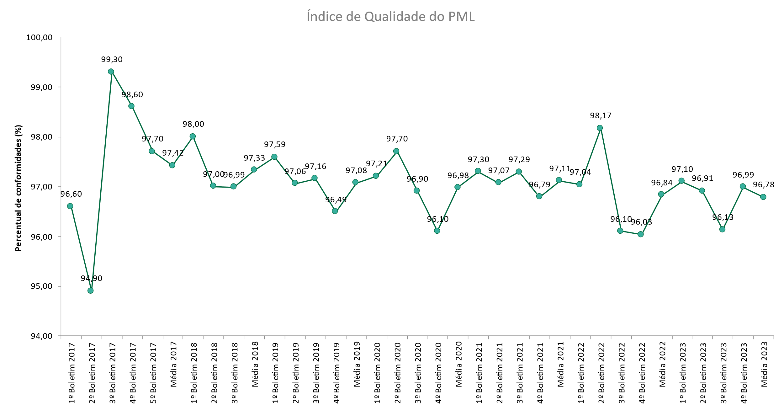 Desde sua implantação, em 2006, o PML avalia quesitos de qualidade e registro. O CPT analisou mais de 20.000 amostras até o momento, mais precisamente 20.035 amostras. O percentual de não conformidades apresentou sensível diminuição ao longo dos anos.