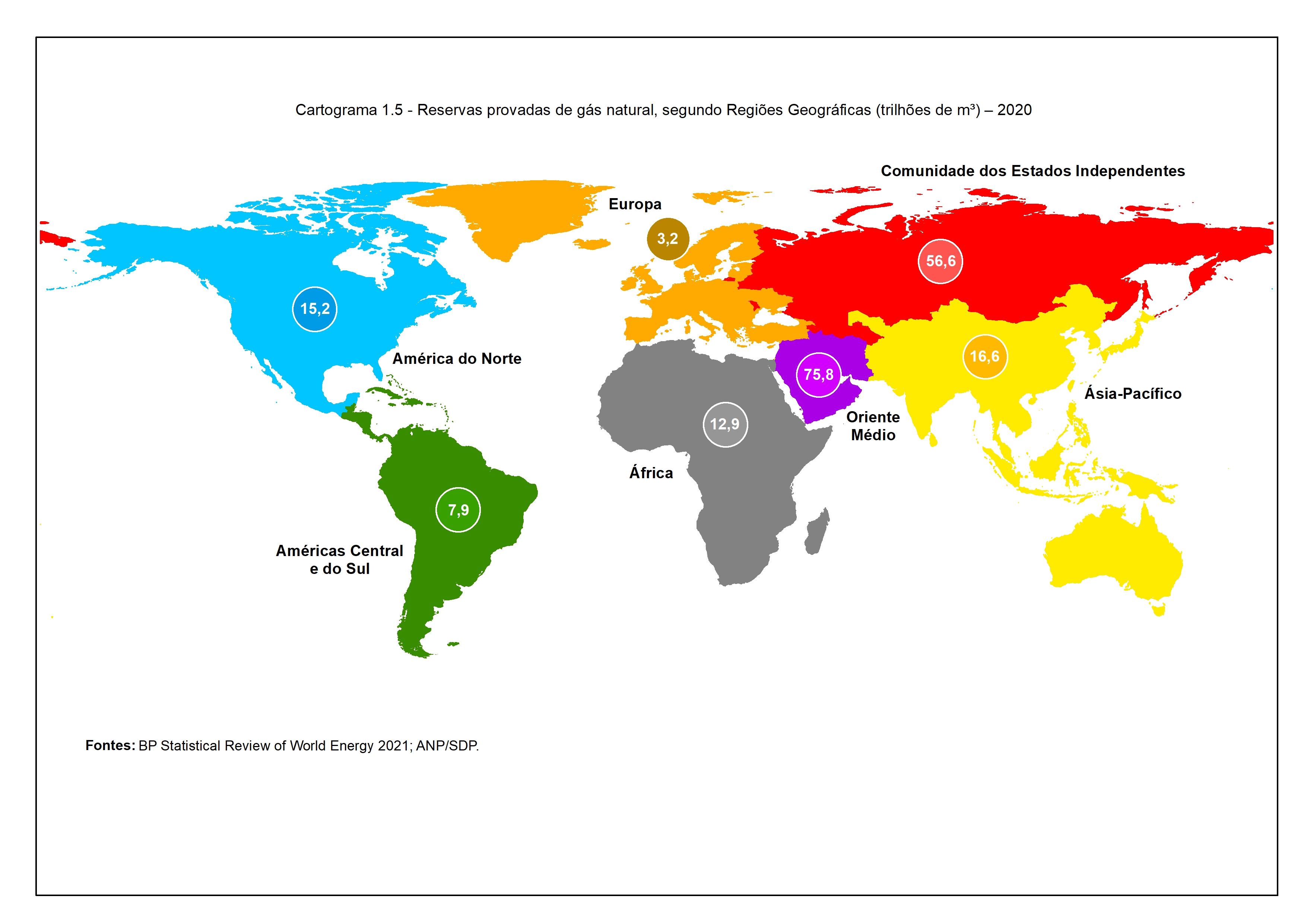 Cartograma 1.5 – Reservas provadas de gás natural, segundo Regiões Geográficas – 2020