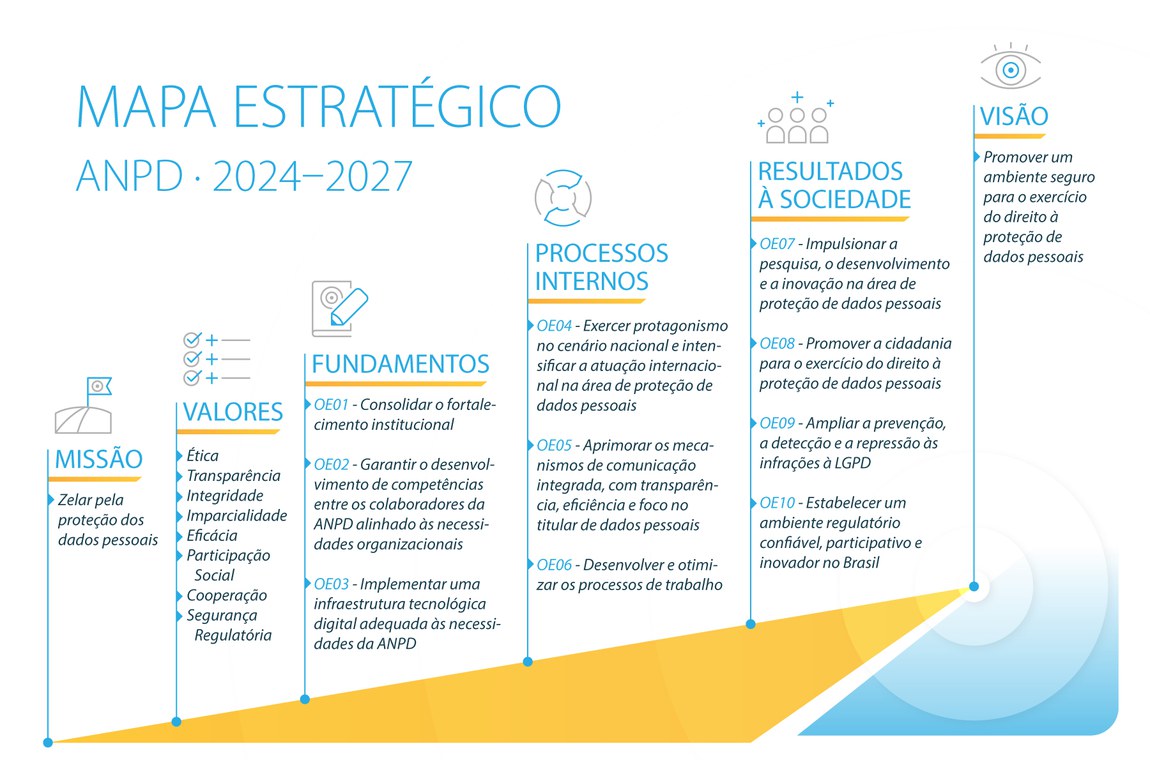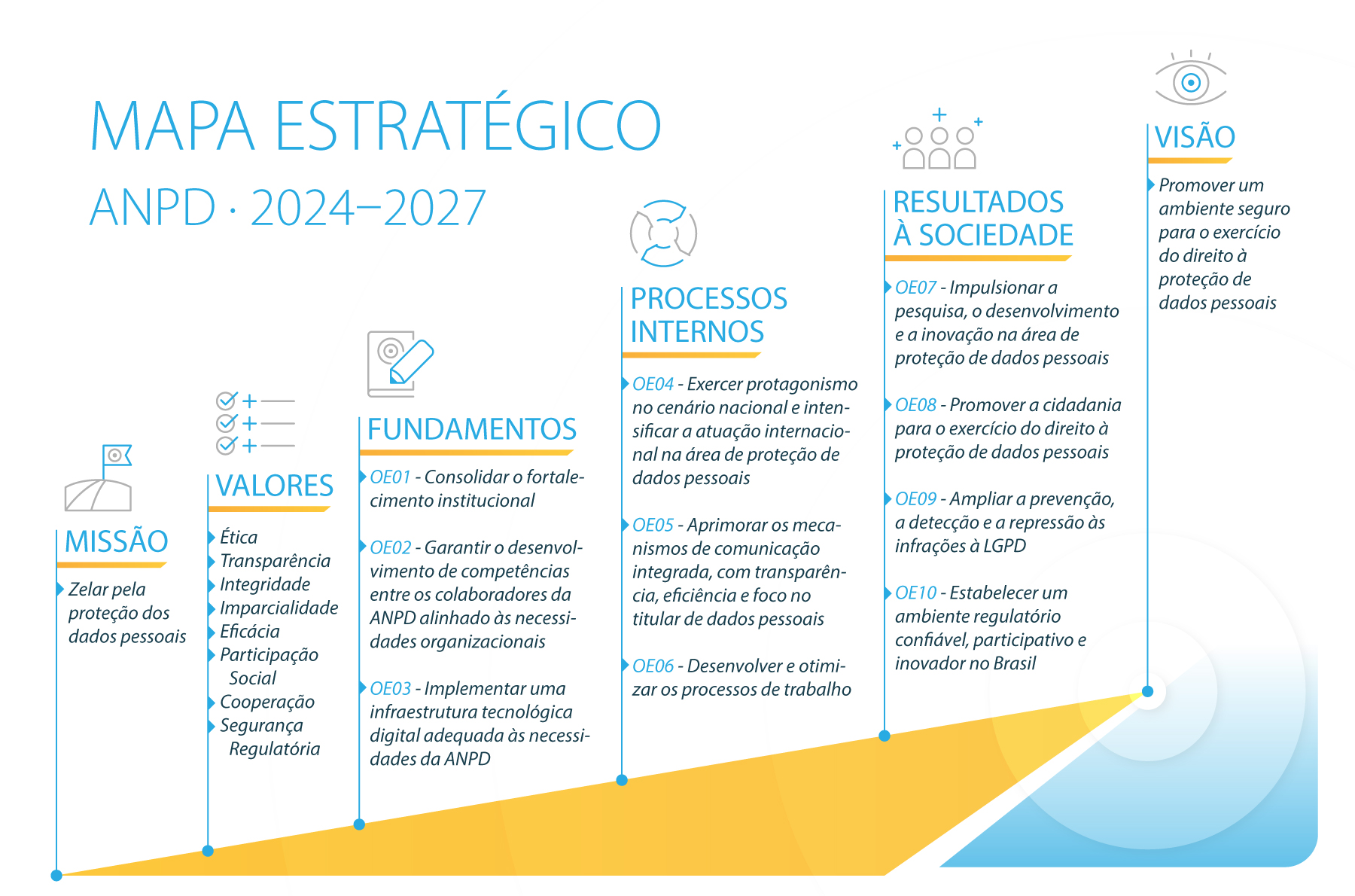 Visualize abaixo o Mapa Estratégico da ANPD para os anos 2024 a 2027.