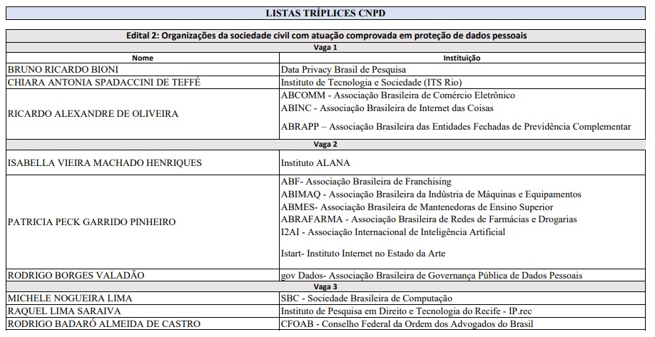 O envio das listagens à Casa Civil encerra o processo de composição do Conselho dentro da ANPD. O processo de seleção é regulamentado pelo Decreto nº 10.474/2020 .