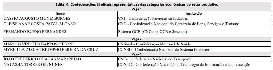 Ao todo, a Autoridade recebeu 72 candidaturas de representantes da sociedade civil, para o preenchimento de vagas para 13 membros titulares e 13 suplentes. Estão representadas organizações da sociedade civil; instituições científicas, tecnológicas e de inovação; confederações sindicais; entidades representativas do setor empresarial; e entidades representativas do setor laboral.