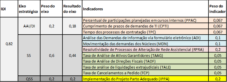 Tabela 3 -Índice de Desempenho Institucional (IDI)