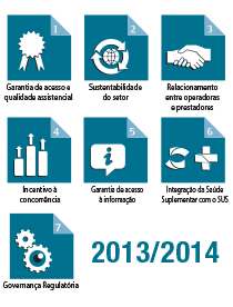 A Agenda Regulatória 2013/2014 é composta por sete eixos, cada qual com seus projetos.