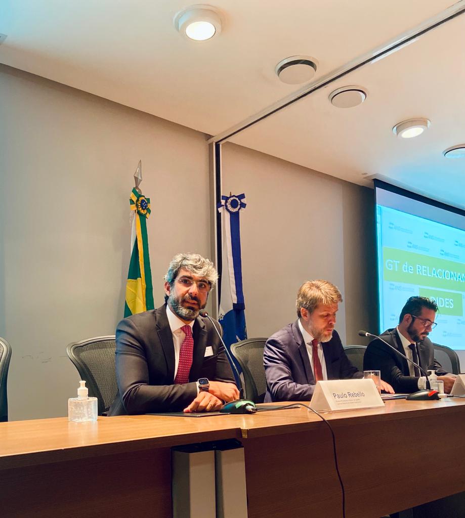Mesa de abertura com o diretor presidente da ANS, Paulo Rebello, subprocurador-geral do Estado do Rio de Janeiro, Rafael Rolim, e diretor de Desenvolvimento Setorial, Maurício Nunes.