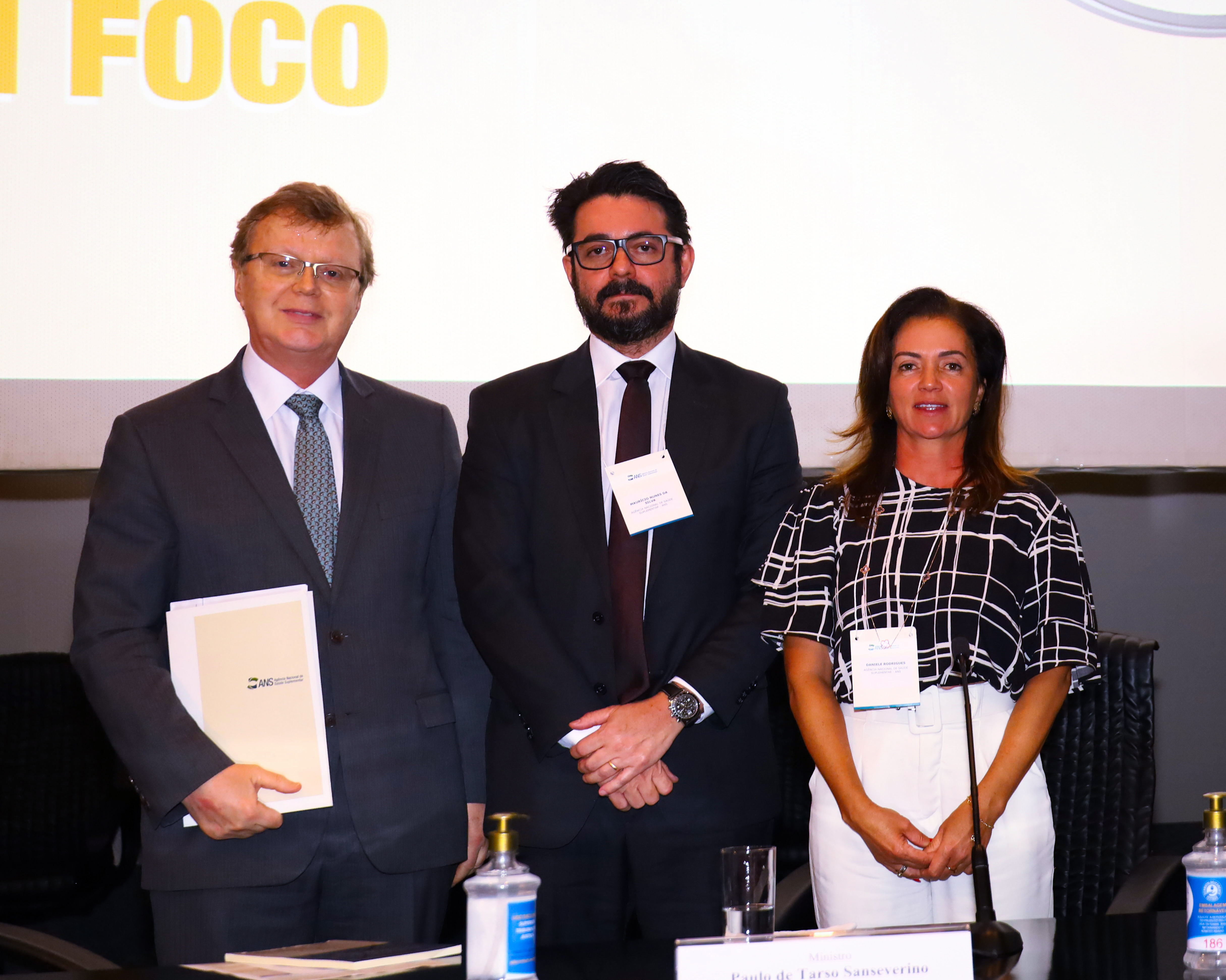 Último painel do dia com o tema Reajuste de Planos de Saúde. Da esquerda pra direita: ministro do STJ Paulo Sanseverino; diretor de Desenvolvimento Setorial, Maurício Nunes; gerente Econômico-Financeira e Atuarial dos Produtos da ANS, Daniele Rodrigues. Foto: Ag. CNJ