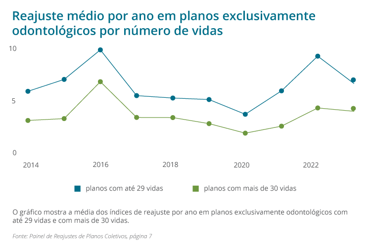 Reajuste médio operadoras exclusivamente odontológicas por porte