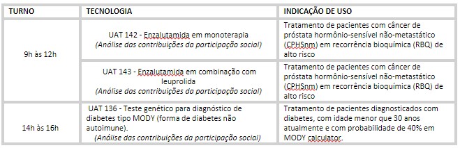 Calendário das Operadoras