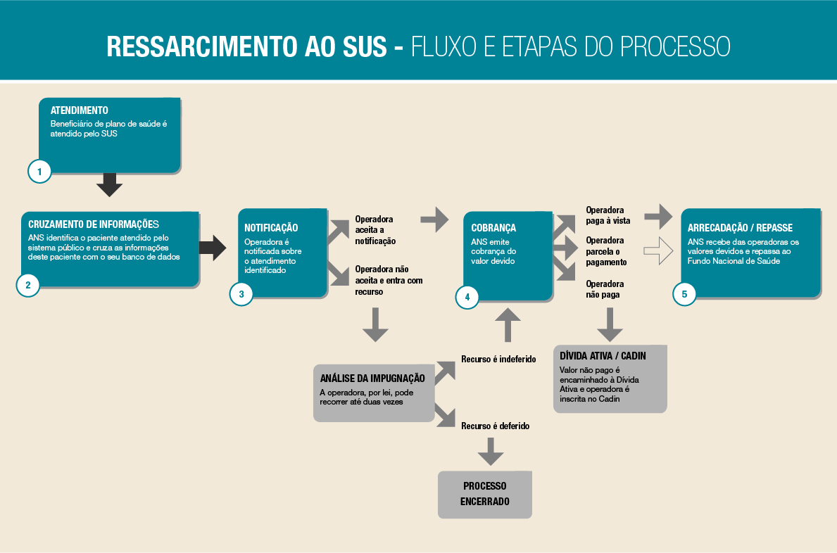 Para reconhecer um beneficiário de plano de saúde atendido pelo Sistema Único de Saúde, a ANS realiza o “batimento” que cruza, periodicamente, a base de dados do SUS com a da agência. O mecanismo de identificação ocorre após o recebimento, do DATASUS, das bases de dados com informações sobre os atendimentos realizados na rede pública/privada conveniada ao SUS em todo o território nacional e registrados por meio de Autorização de Internação Hospitalar (AIH) e por Autorização de Procedimento Ambulatorial (APAC).
