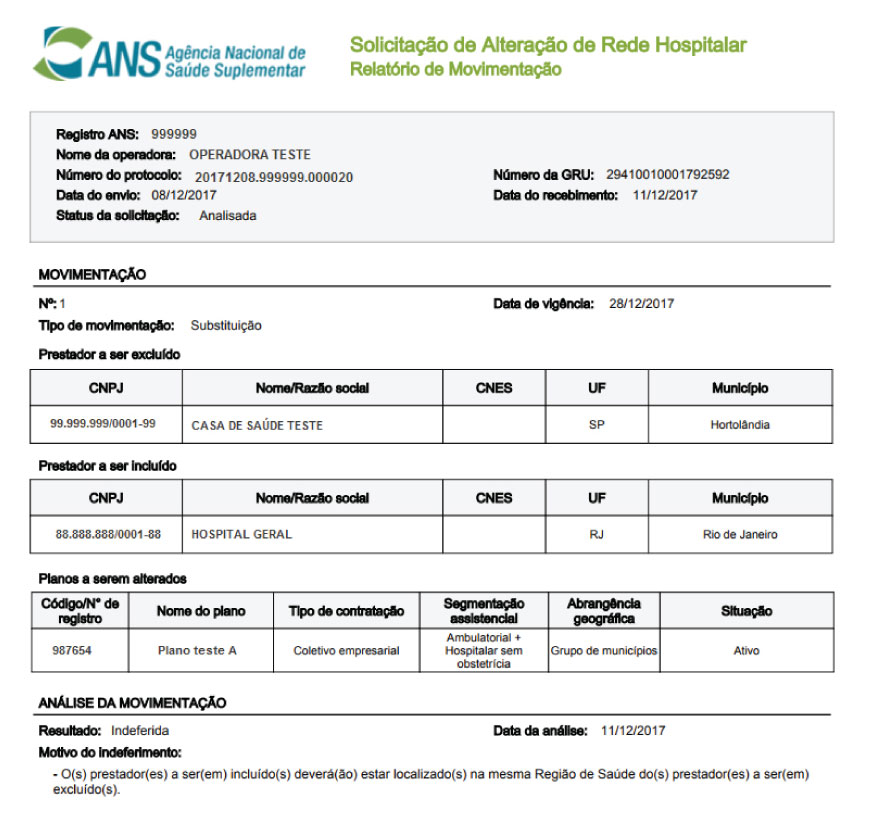 - Cancelada por solicitação da operadora – solicitações que foram canceladas pela operadora.