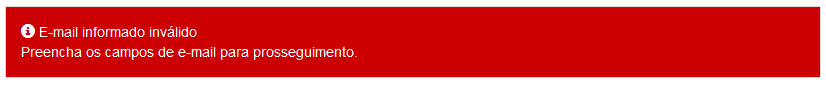 Motivo: E-mail digitado não é igual à confirmação do e-mail.