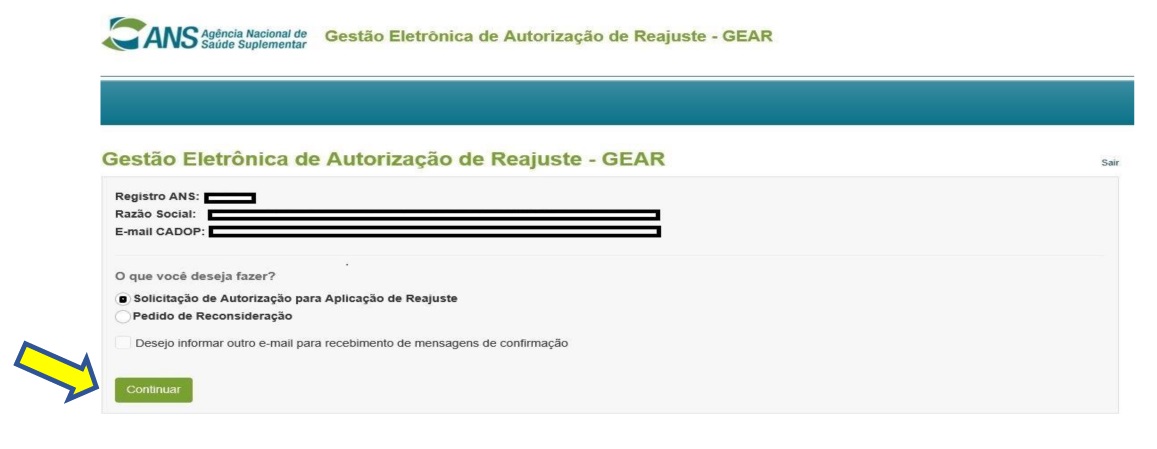 O GEAR efetuará as verificações necessárias ao processamento de recebimento da solicitação de autorização para aplicação de reajuste.