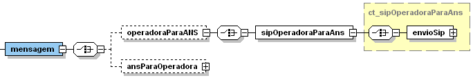 Clique na imagem para ampliá-la.A mensagem da operadora para ANS, precisamente a mensagem envioSip, será formada pela data de trimestre de reconhecimento e a forma de contratação.