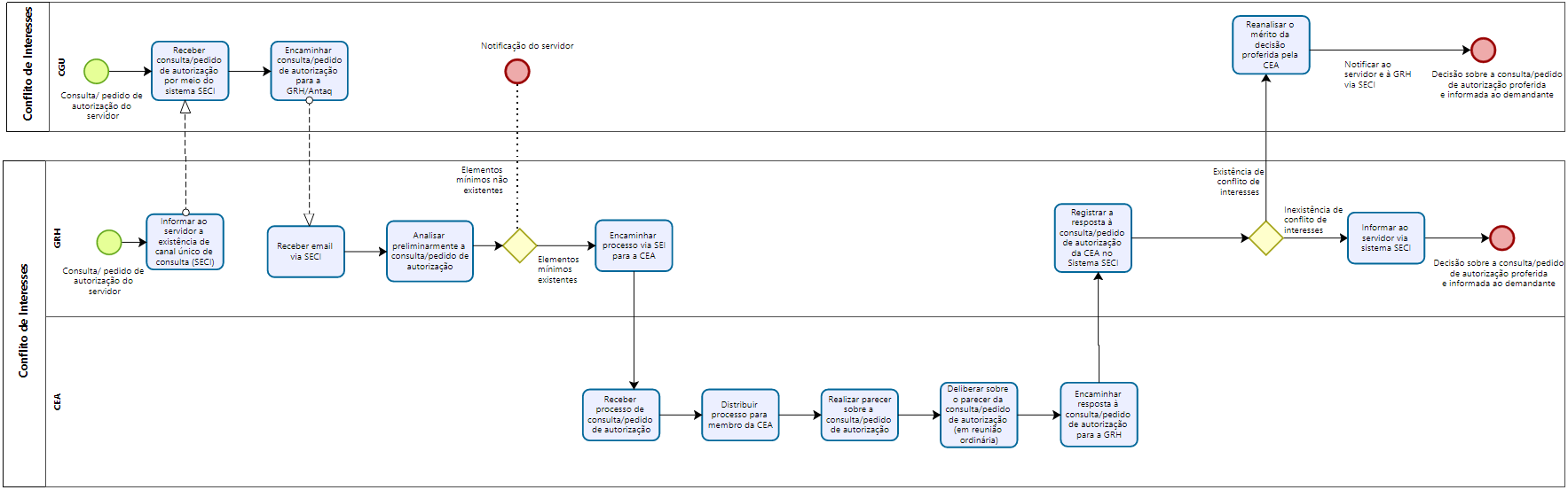 O servidor da Antaq pode fazer consultas e pedir autorização para exercer atividade privada, bem como acompanhar as solicitações em andamento e interpor recursos contra as decisões emitidas por meio do SeCI – Sistema Eletrônico de Prevenção de Conflitos de Interesses, sistema eletrônico desenvolvido pela Controladoria-Geral da União – CGU.