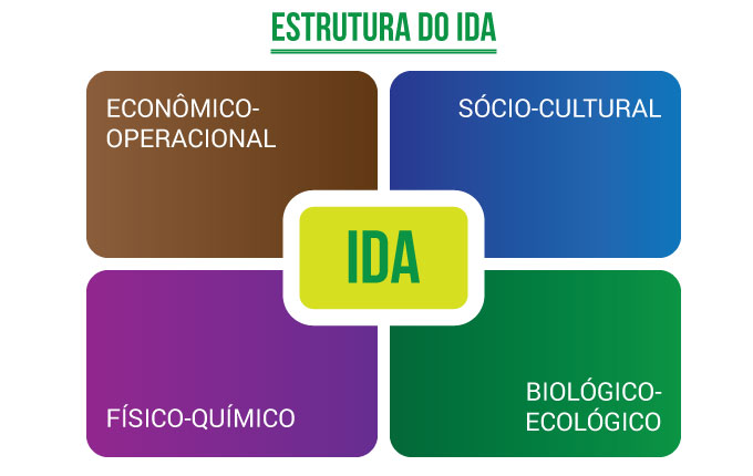 Os 38 indicadores que compõem o IDA são classificados em 4 categorias e 14 indicadores globais. A primeira categoria dos indicadores é a denominada Econômico-operacional. Ela trata das ações da organização, estruturação e capacidade de resposta, voltadas para a gestão ambiental, em harmonia com as suas operações portuárias. Ela possui um conjunto de 7 indicadores globais e 24 indicadores específicos: