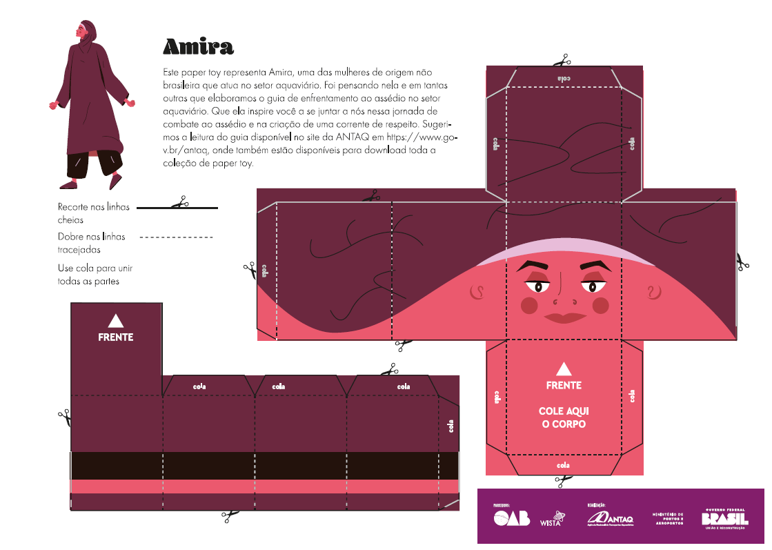 As paper toys complementam essa iniciativa de forma educativa, ajudando a conscientizar e sensibilizar sobre a importância do respeito e da igualdade no ambiente profissional.