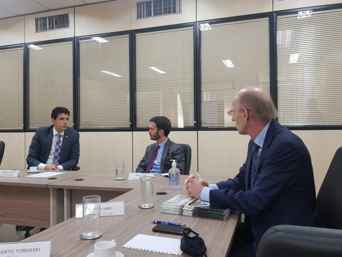 Durante reunião de trabalho realizada na manhã desta quarta-feira, 11, com o secretário-executivo do Ministério da Infraestrutura, Marcelo Sampaio, e o secretário nacional de Portos e Transportes Aquaviários (SNPTA), Diogo Piloni, o diretor da ANTAQ, Adalberto Tokarski, apresentou as estratégias sob análise da Agência para o incremento do potencial da Hidrovia Paraguai-Paraná. O planejamento discutido pelo dirigente é fruto do estudo produzido pela Agência com a participação da Universidade do Paraná, intitulado de “Prática Regulatória, Vantagens Competitivas e Oferta e Demanda de Carga entre os Países Signatários do Acordo da Hidrovia Paraguai–Paraná”.