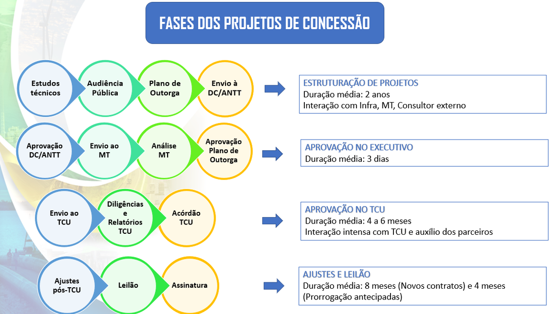 Após a qualificação pelo PPI de um projeto de infraestrutura, a ANTT torna-se responsável pelos estudos de viabilidade técnica e econômico-financeiro, com apoio do Ministério dos Transportes, Infra S.A., PPI, bem como de consultores externos. A Superintendência de Concessão da Infraestrutura atua nas fases de estruturação de projetos até a assinatura do contrato ou termo aditivo respectivo:
