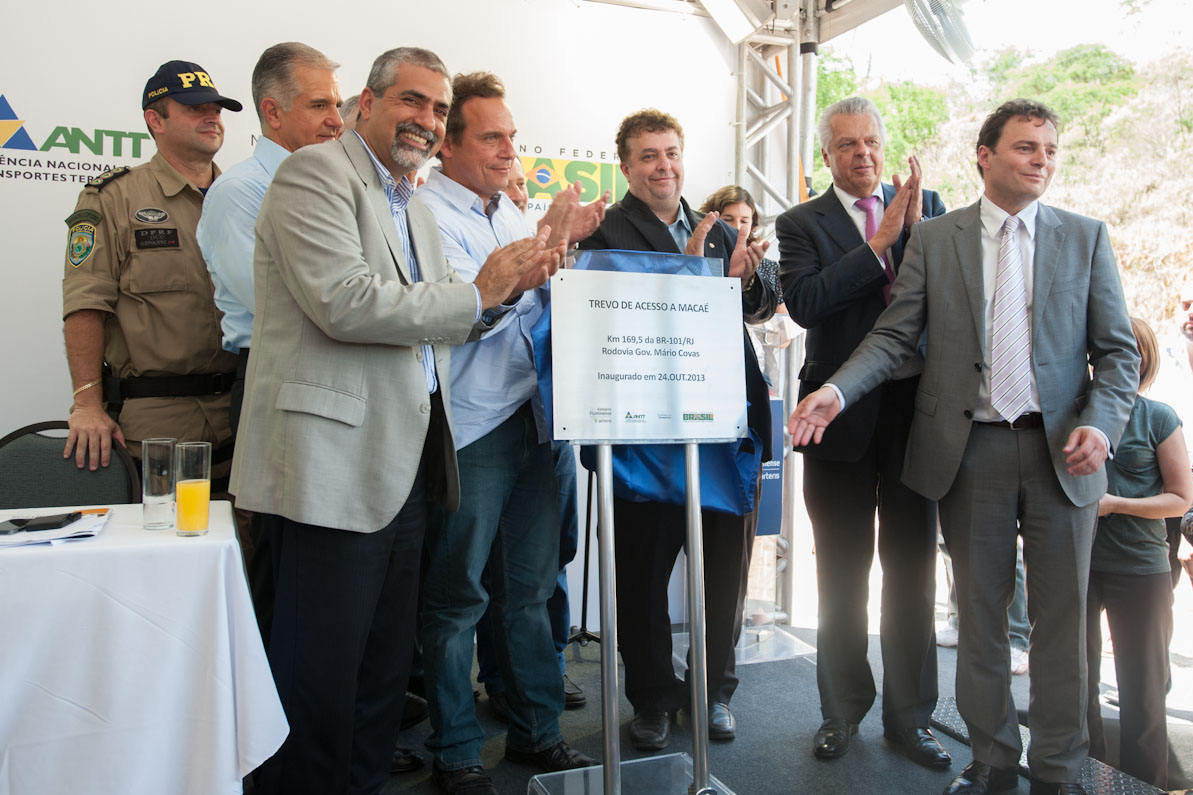 Na manhã de quinta-feira (24/10), o Diretor-Geral da ANTT Jorge Bastos participou da solenidade do trevo de Macaé no km 169 na Br-101/RJ. Foram investidos 10 milhões de reais nessa obra, solucionando grave problema no trecho onde acidentes provocaram inúmeras vitimas. Segundo o diretor Odílio Ferreira, superintendente da Autopista Fluminense, concessionaria que explora rodovia, a empresa antecipou o licenciamento para execução da obra.