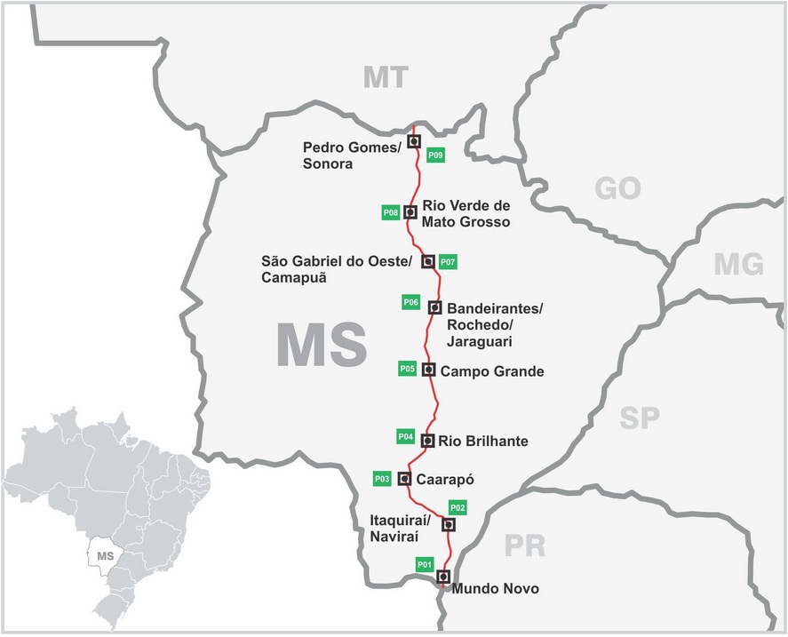 O segmento inicia-se na divisa com o estado de Mato Grosso e termina na divisa com o Paraná, atravessando vinte municípios no estado de Mato Grosso do Sul.