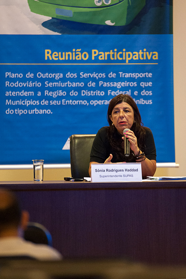 A reunião faz parte da agenda da Audiência Pública n° 129/2012, que tem o objetivo de obter contribuições para o aprimoramento do Plano de Outorga dos Serviços de Transporte Rodoviário Semiurbano de Passageiros que atendem à Região do Distrito Federal e dos municípios de seu entorno. Atualmente, nesta região, circulam cerca de 90 milhões de passageiros por ano, com 551 linhas de ônibus.