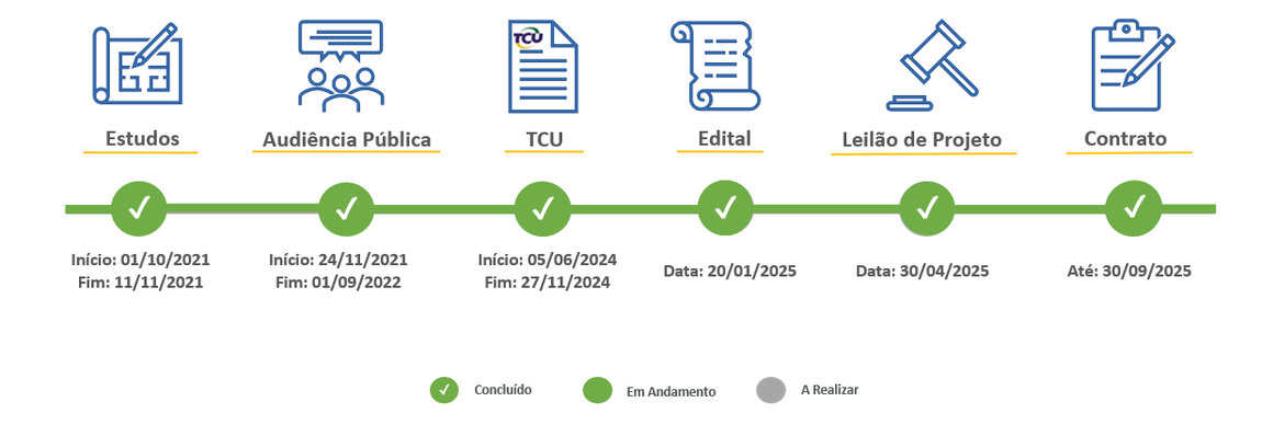 Com a autorização da Corte de Contas, o Edital de Concessão nº 01/2025 foi publicado em 20 de janeiro de 2024, aprovado pela Deliberação ANTT nº 11, de 17 de janeiro de 2025.