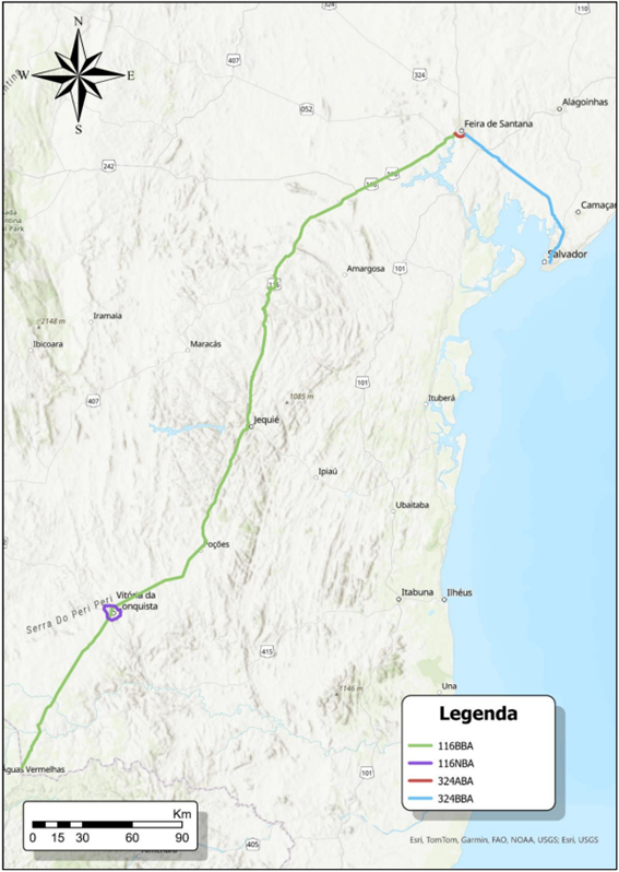 O processo de relicitação da concessão das rodovias BR-324/116/BA abrange um trecho de 663 quilômetros, incluindo a BR-324/BA, desde o acesso ao Contorno de Feira de Santana até o entroncamento com a BR-116/BA, e a BR-116/BA, do entroncamento com a BR-324/BA até o viaduto sobre a BR-116, em Vitória da Conquista. Atualmente, a administração desses trechos está sob responsabilidade da ViaBahia Concessionária de Rodovias S.A.