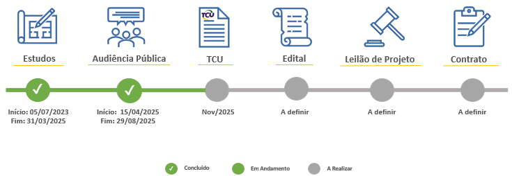 Para garantir transparência e participação social no processo, a Deliberação nº 124, de 7 de abril de 2025, estabeleceu a realização da Audiência Pública nº 2/2025. Esse evento tem como objetivo apresentar as minutas do Edital e do Contrato, bem como o Programa de Exploração da Rodovia e os Estudos de Viabilidade, permitindo que a sociedade contribua com sugestões e aperfeiçoamentos ao projeto. Mais informações sobre a audiência pública podem ser acessadas no ParticipANTT ou clicando aqui.