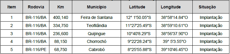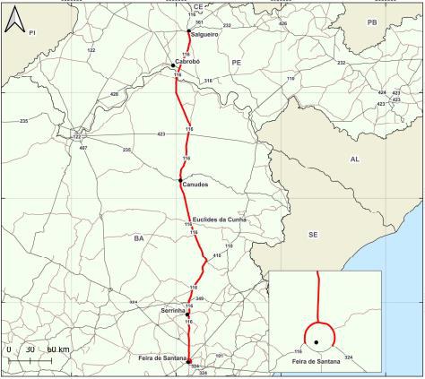 - BR-116/BA: trecho entre a divisa PE/BA e o entroncamento com a Av. Eduardo Fróes da Mota;