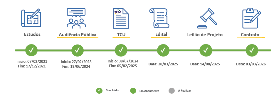 Em seguida, o Plano de Outorga foi formalmente aprovado pelo Ministério dos Transportes, por meio da Portaria nº 621, de 28 de junho de 2024, sendo então encaminhado ao Tribunal de Contas da União (TCU) para a devida análise técnica.