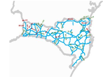 | Descrição dos trechos: | I – Rodovias Federais BR-153/158/163/280/282/470/480/SC, em uma extensão de 1.647,30 km; II – Rodovias Estaduais SC-108/110/114/120/135/155/157/163/280/283/350/355/370/ 386/410/412/416/417/418/421/445/452/453/480/486 em uma extensão de 1.506,07 km. |