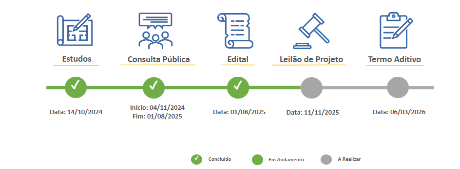 Por meio da Deliberação nº 516, de 5 de dezembro de 2024 da Diretoria Colegiada da ANTT, deu-se início ao processo de Consulta Pública n° 2/2024, com o objetivo de tornar público o projeto, colher sugestões e contribuições às minutas de Edital de processo competitivo, Termo aditivo e seus anexos, ao Programa de Exploração da Rodovia e ao Modelo Econômico-Financeiro, que visa à proposta de readaptação e otimização do contrato de concessão relativo a BR-101/RJ (Autopista Fluminense).