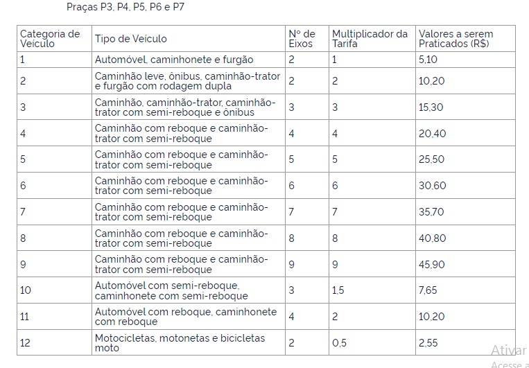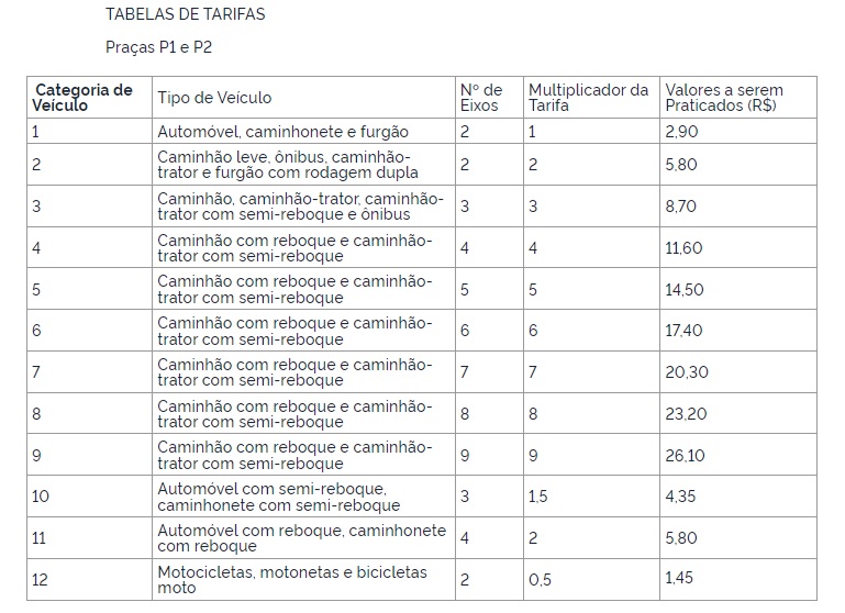 Reajuste: tem por intuito a correção monetária dos valores da tarifa e leva em consideração a variação do Índice de Preços ao Consumidor Amplo (IPCA). Acontece uma vez ao ano, sempre no aniversário do início da cobrança de pedágio.