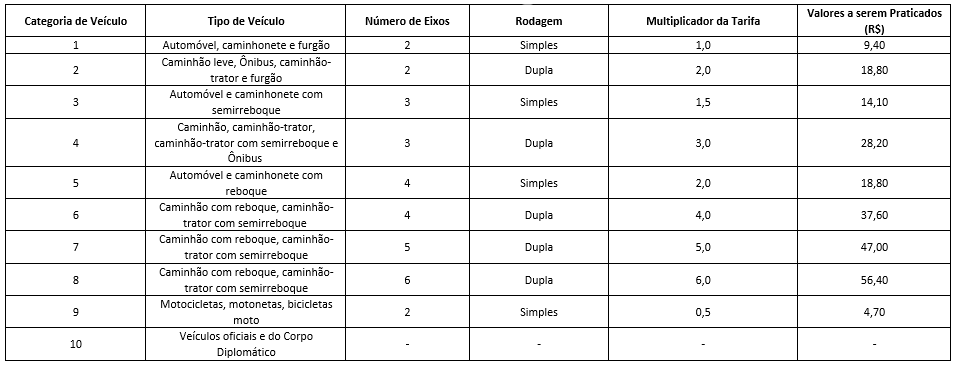 Art. 1º Aprovar a Tarifa Básica de Pedágio reajustada de R$ 9,42053, nas praças de pedágio referentes ao trecho concedido da BR-153/SP – Divisa MG/SP – Divisa SP/PR, explorados pela Transbrasiliana Concessionária de Rodovia S/A., com base nas seguintes alterações: