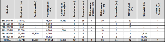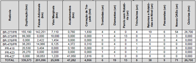 Lote 1 : trechos das rodovias BR-277, BR-373, BR-376, BR-476, PR-418, PR-423 e PR-427, numa extensão total de 473,01 km;