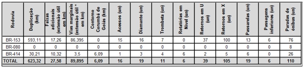 - Rodovia BR-080/GO - Do entroncamento com a BR 414 em Assunção de Goiás/GO até o entroncamento com a BR 153.