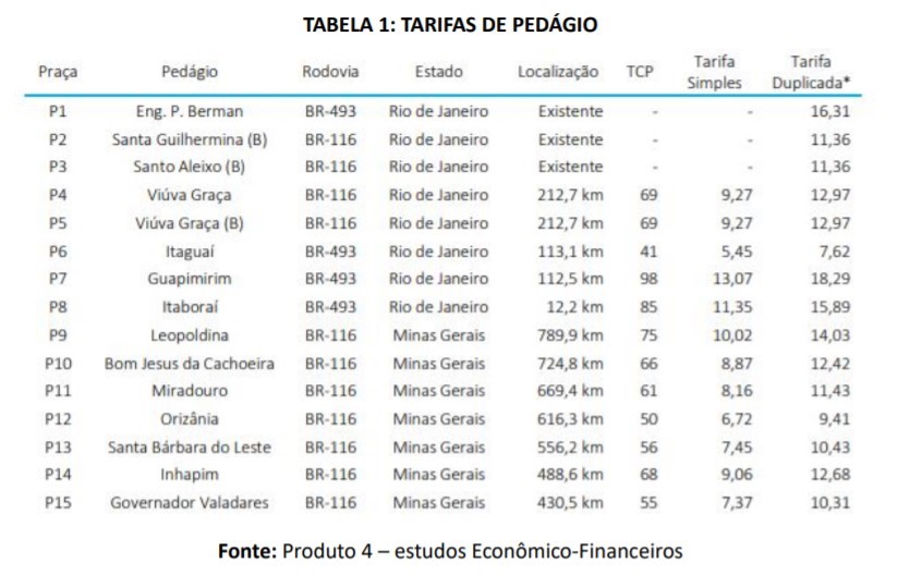 Praças de pedágio – Em atenção às preocupações tarifárias da população do Município de Magé, responsável pela maior quantidade de manifestações nas audiências públicas do projeto, a ANTT resolveu não sujeitar as tarifas das praças existentes à possibilidade de acréscimos tarifários quando da sucessão entre concessões, mesmo que apenas durante o período de transição até a substituição pelas novas praças. Assim, nas praças existentes e que serão desativadas, as tarifas foram mantidas congeladas nos patamares tarifários que levarão, no início da concessão, aos mesmos níveis das tarifas atualmente praticados.