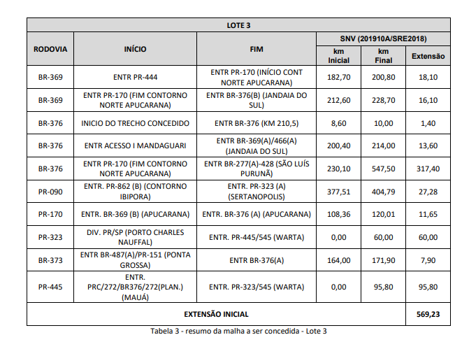 •Lote 3 – Rodovias BR-369/373/376 e PR-090/170/323/445;