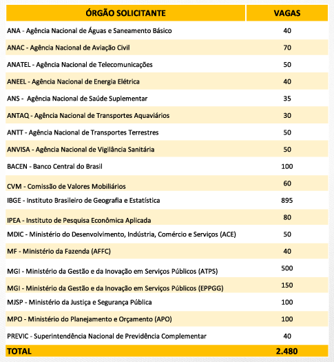 Nesta terça-feira (18/7), a ministra da Gestão e da Inovação em Serviços Públicos (MGI), Esther Dweck, anunciou a autorização de abertura de concursos para 2.480 cargos efetivos no governo federal, sendo 50 destinados para a Agência Nacional de Transportes Terrestres (ANTT). O último concurso para a Agência foi realizado em 2013. Veja o quadro abaixo:
