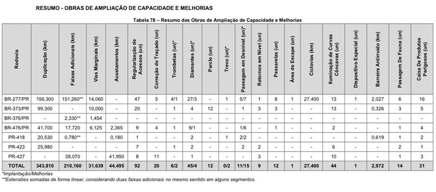 Concessão – A Infraestrutura Brasil Holding XXI S.A., do grupo Pátria Investimentos, será responsável pela operação, conservação, ampliação e manutenção do Lote 1 do Paraná por 30 anos. Essa concessão abrangerá Curitiba e cidades em sua área metropolitana, como Araucária, Campo Largo, Imbituva, Irati, Lapa e Prudentópolis, incluindo as BRs-277/373/376/476/PR e PRs-418/423/427.