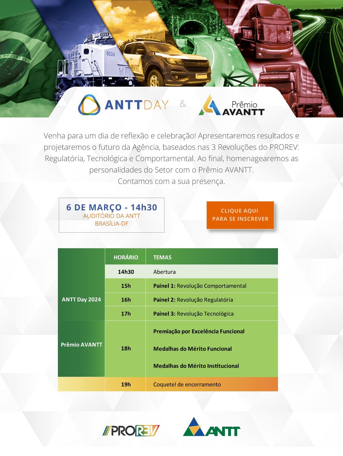 Um dia de reflexão e celebração! Apresentaremos resultados e projetaremos o futuro da Agência, baseados nas 3 Revoluções do PROREV: Regulatória, Tecnológica e Comportamental. Ao final, homenagearemos as personalidades do Setor com o Prêmio AVANTT.